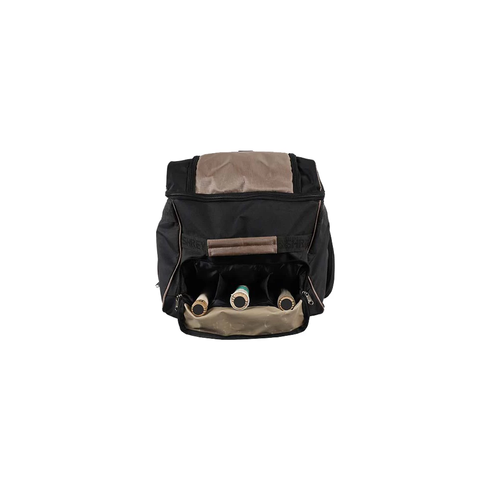Separate compartments for shoes, clothing, accessories and protective gear for better organization.